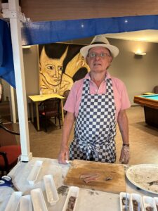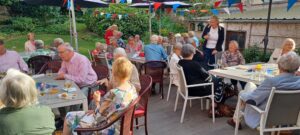 Het eerste vaatje Hollandse Nieuwe, vangst 2025, werd tijdens de traditionele veiling op 17 juni jl. afgehamerd voor maar liefst € 89.500. Gelukkig kon het NV haring(inkoop)team (Kees en Wiebe) via St.Annaland op Tholen in Zeeland de haringen voor minder inkopen! Op een zonovergoten terras gingen afgelopen vrijdag 27 juni de haringen bij de 60 aanwezige leden erin als koek! Iedereen was het erover eens: de haringen waren “ fris, ziltig en romig” van smaak.